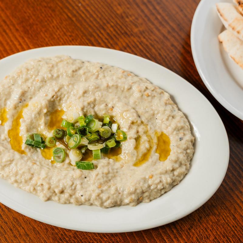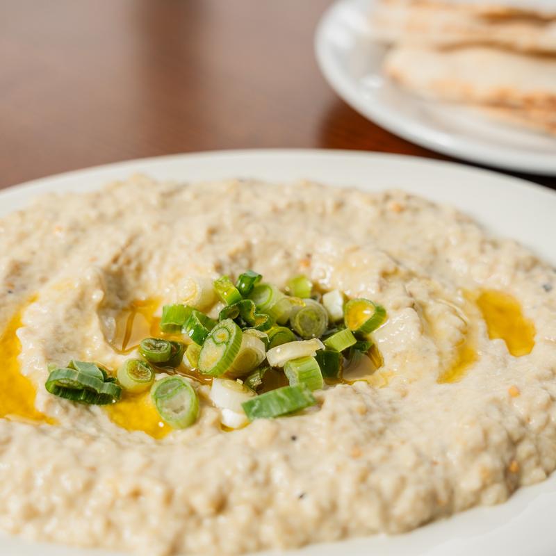 Charbroiled eggplant, blended with tahini & lemon juice, topped with scallions & olive oil