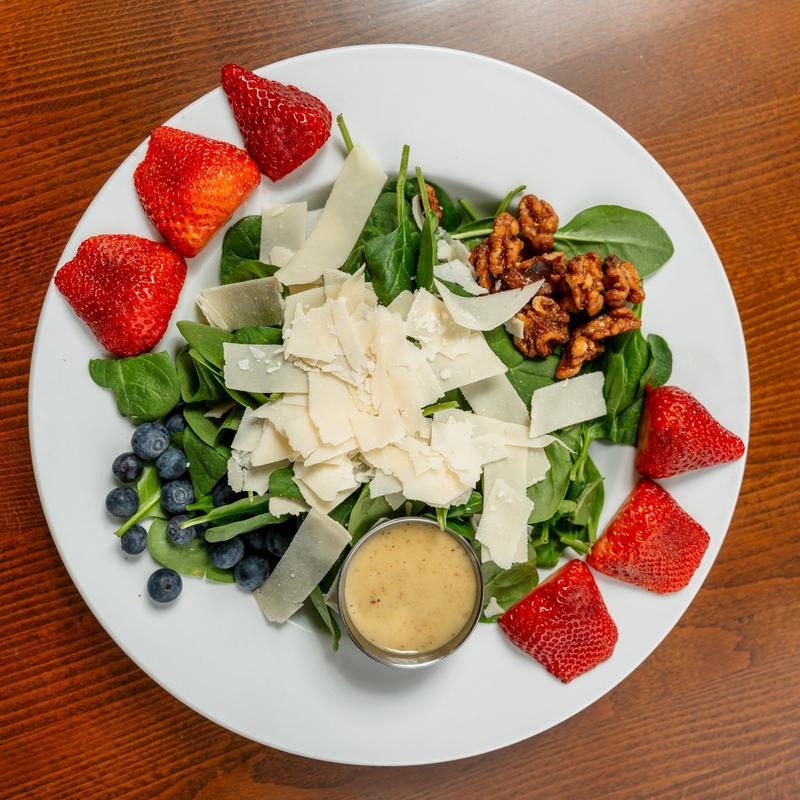 Candied walnuts, strawberries, blueberries, parmesan, Dijon mustard