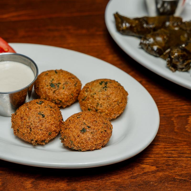 Patties of chickpea & fava bean blend, mildly spiced, Served with a side of tahini